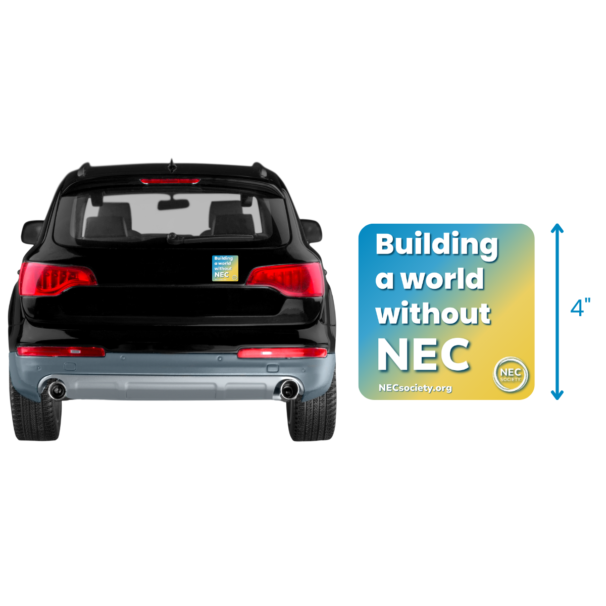 Show off your support for NEC Awareness while driving! This “Building a world without NEC” car magnet will be seen by everyone you drive by, maximizing our impact and spreading awareness!