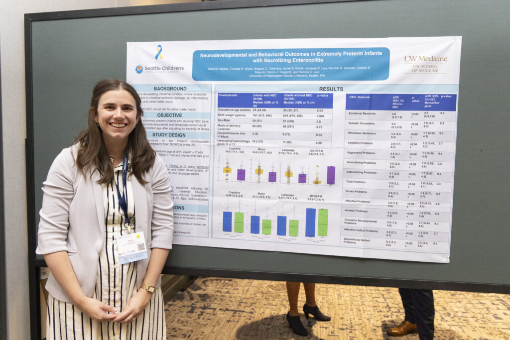 Dr. Strobel previously received the NEC Symposium Research Award at the 2025 NEC Symposium in Chicago. She was a podium presenter who received a top score for her abstract, “Neurobehavioral Outcomes in Extremely Preterm Infants with Necrotizing Enterocolitis.” In addition to this recognition, Dr. Strobel is leading research exploring maternal milk microbial and cytokine composition.